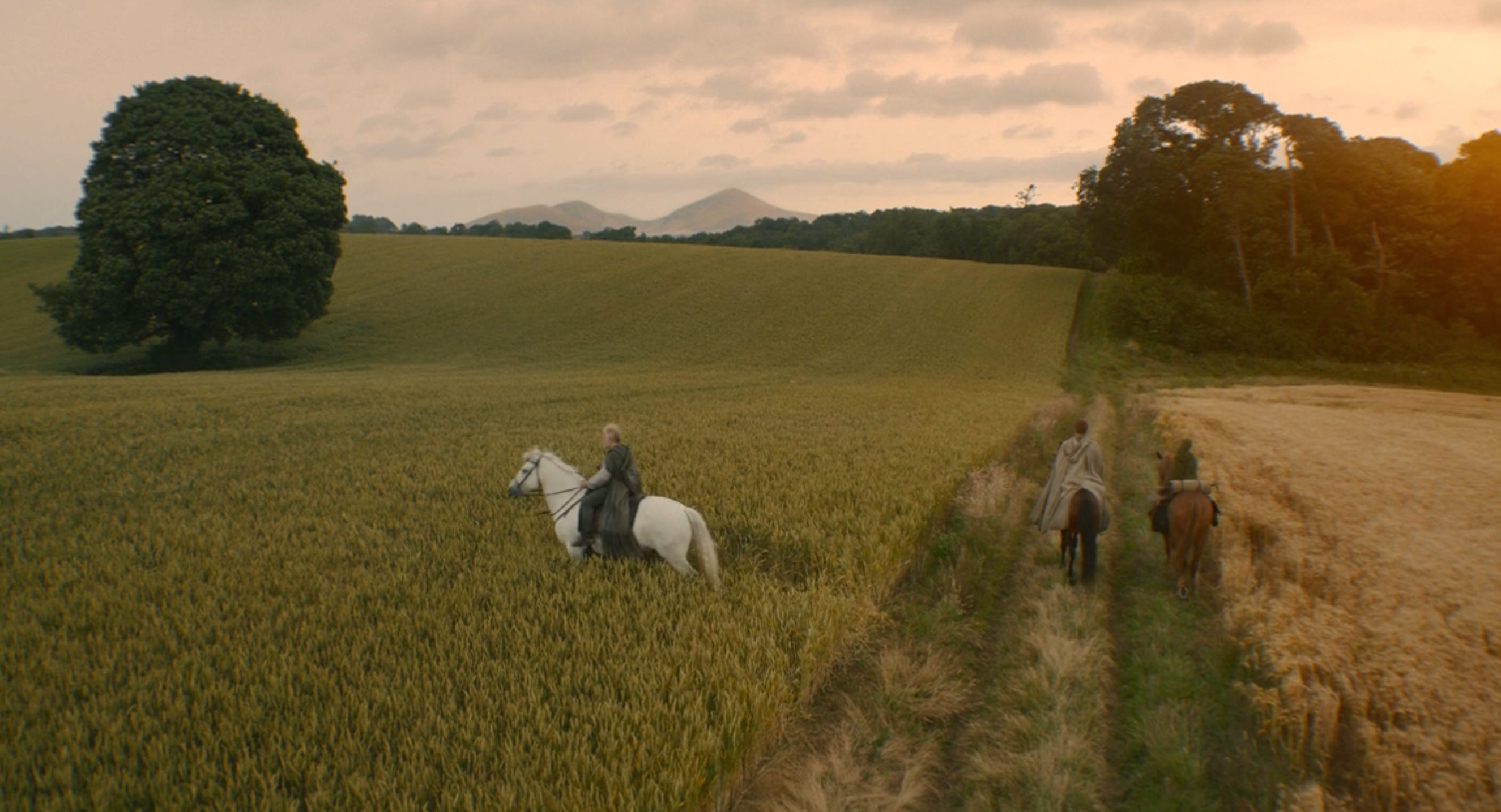 Parker has made it impossible for one to know exactly where in the timeline of Dunk’s life each of these flashbacks to Ser Arlan has happened, but the finale’s big peek into Dunk’s memory is certainly taking place in the very spot we know he died. Arlan is laid under the tree on the hillside where he was buried in the show’s opening scene. His cut (which was also revealed to us in an episode two flashback) is still visible on his arm, and Dunk is clearly distressed by the possibility that his old man will perish before knighting him.
