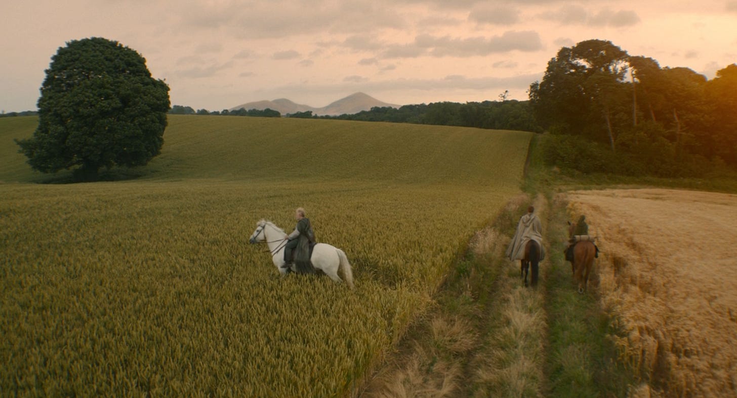 As I already outlined after last episode’s climactic trial, Ser Duncan and Ser Arlan worship the Mother goddess above all else. What the finale episode makes clear is that Dunk will be best father-figure possible to his young squire Egg, despite a complicated history to the norms of Westeros. Dunk is humble, fair, strong, and kind. His naivete brushes him up against the most dangerous aspects of life, like Ned in A Game of Thrones, but in this story Martin doesn’t make that innocence a guarunteed death sentence. Instead he rewards Dunk, and we feel a healing sigh of relief even among the bittersweet tragedy.