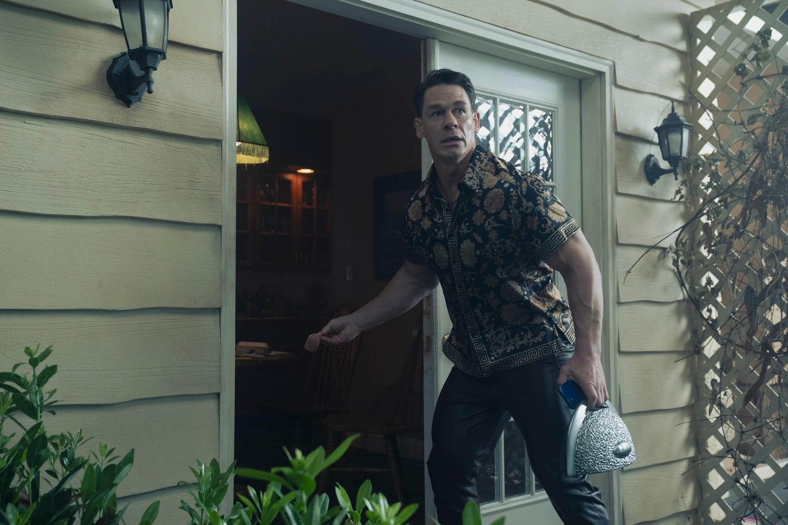 After the title sequence, “Need I Say Door” returns to present-day events of Peacemaker, as the A.R.G.U.S. team races toward the Smith house to confront Chris and Eagly, and to stop whatever multiversal disruption they’ve detected behind the closet in his home. I distinctly remember the team arriving at his house at the end of last week’s episode, but maybe I’m just feeling the effects of some kind of dimensional warping.